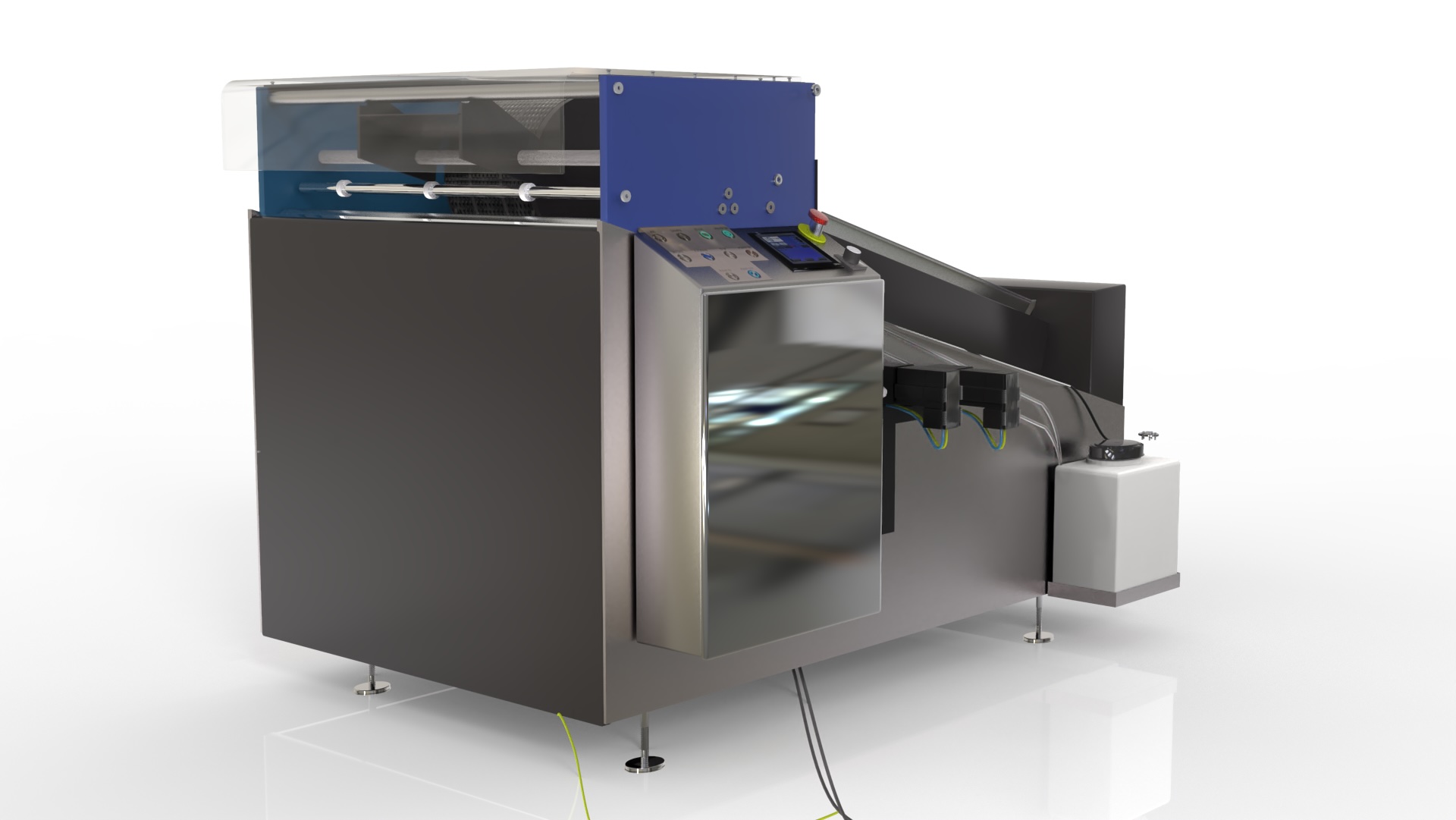 Sloped stainless steel electrical cabinet and Swiss-made stainless steel ink pumps for long-lasting performance